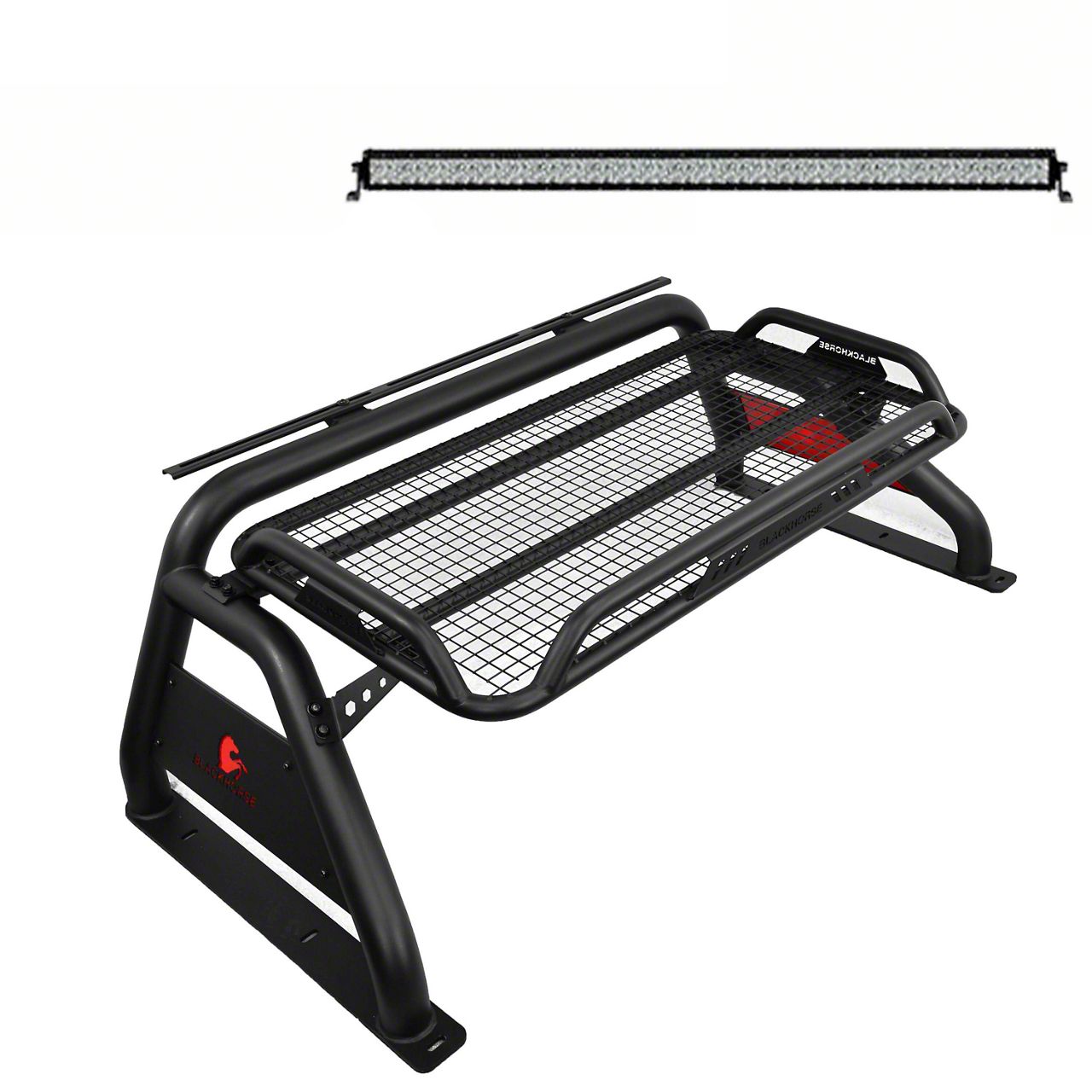 Atlas Roll Bar Kit Black Steel WITH ORIGINAL CARGO BASKET & FLAT BASE WITH LED BRAKE LIGHT W/40" LED light Bar