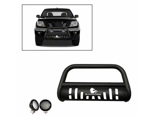 Application. This Bull Bar with Skid Plate and 5.30-Inch Black Round Flood LED Lights (Textured Black) fits all 2005-2021 Nissan Frontiers.