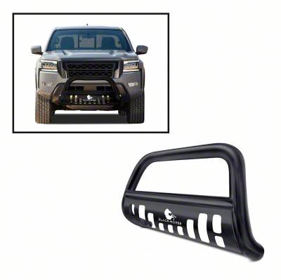 Aggressive Looking Protection. This bull bar is designed to enhance the front-end protection of your vehicle while adding a rugged and aggressive look. With a no-drill installation process, this bull bar can be easily mounted to your Nissan Frontier without any modifications.