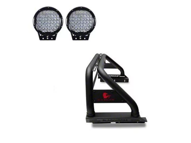 Rugged Stylish Look. Upgrade your Frontier with the Classic Roll Bar for Tonneau Cover with 9-Inch Black Round Flood LED Lights; Black. This roll bar is designed for Frontier owners who want to combine functionality with a bold, rugged look. Crafted from robust steel, the roll bar is built to endure the rigors of both on and off-road use. Its durable construction ensures it can withstand tough conditions, making it an ideal addition for adventure enthusiasts.