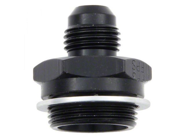 Construction and Appearance. This fitting is manufactured with aerospace quality aluminum and features a black anodized finish. It is machined to mil spec tolerances, ensuring strong and durable construction.