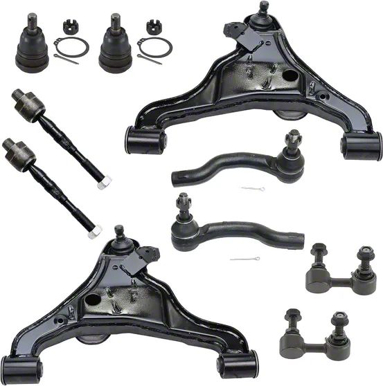 Construction and Features. Built in an ISO9002 certified facility, these control arms are crafted to meet high standards of quality and performance. The set includes ball joints, sway bar links, and tie rods, all impact, wear, and fatigue tested to ensure long-lasting durability and reliability. The matte black finish adds a sleek look and protects against corrosion and wear.