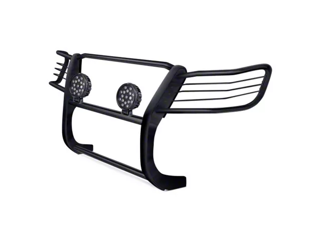 Convenient Mounting. Pre-drilled holes provide convenient mounting for lighting options, giving your ride improved visibility and style. The package includes vehicle-specific hardware and a mounting kit for a seamless fit. This Grille Guard with 7-Inch Round LED Lights is the perfect addition to your vehicle for enhanced protection and style.