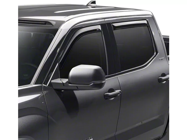 Application. This In-Channel Ventvisor Window Deflectors (Front and Rear, Dark Smoke) fits all 2022-2026 Nissan Frontier Crew Cabs.