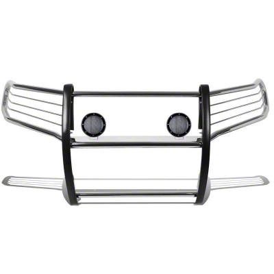 Durable Construction. Crafted from robust 1 1/2-Inch-diameter Stainless Steel, the grille guard is cold-rolled and mandrel-bent to ensure strength and durability. The corrosion-resistant e-coating with a powder-coated finish guarantees long-lasting performance and a sleek black look.