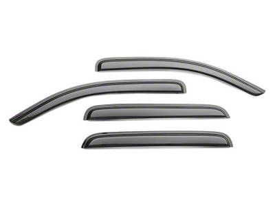 Enhanced Comfort and Style. Improve the driving experience of your 2022-2026 Frontier Crew Cab with these sleek rain guards. Featuring a smoked black finish, these guards are crafted from high-quality acrylic, blending durability with lightweight design. They are ideal for reducing wind noise and allowing fresh air circulation even in inclement weather. The smoked black finish provides a subtle, stylish look that enhances the vehicle's aesthetic while maintaining the stock style appearance.