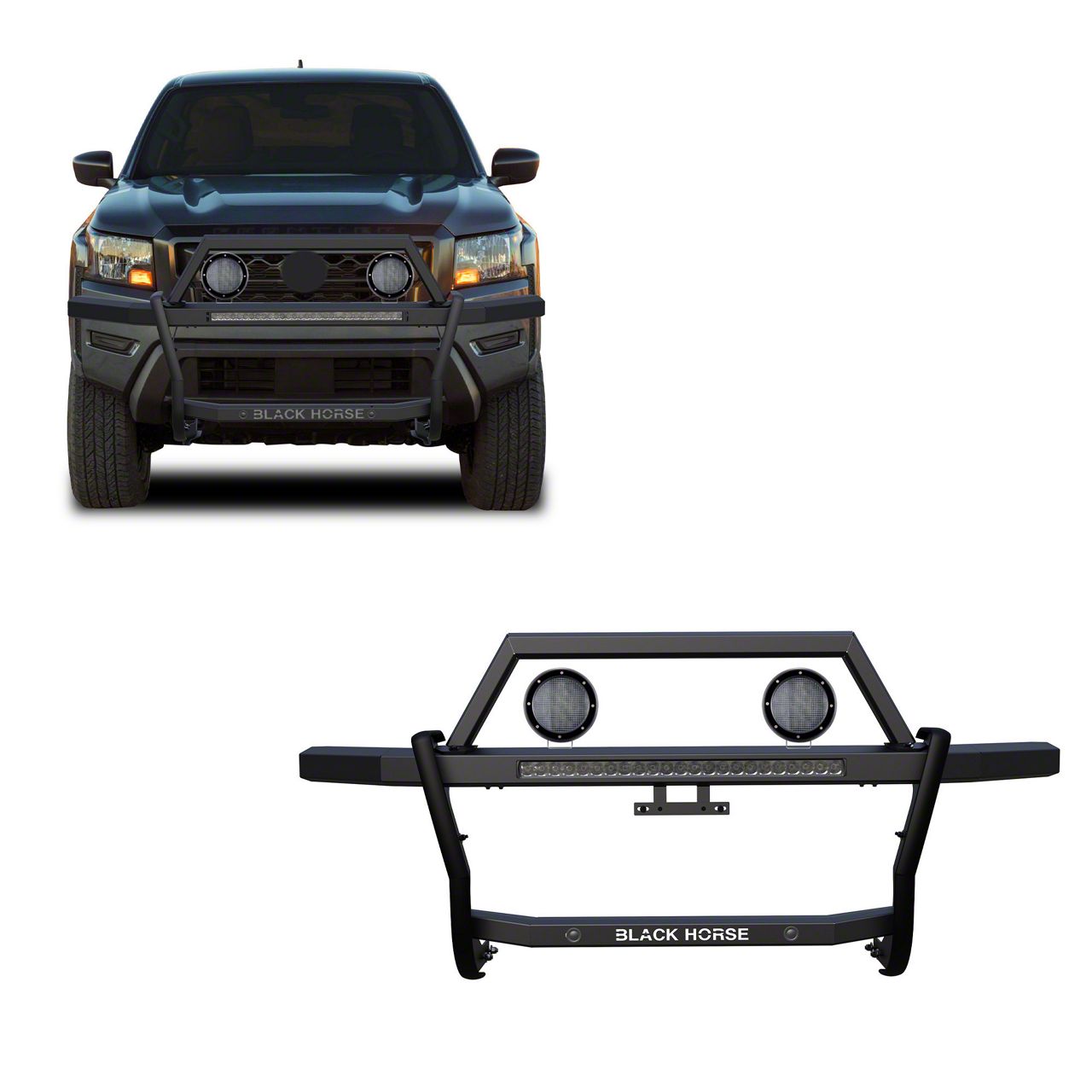 Application. This Rambler Grille Guard with 30-Inch LED Light Bar and 5.30-Inch Black Round Flood LED Lights fits 2022-2026 Nissan Frontier models.