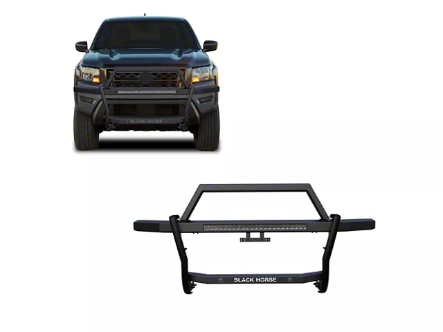 Construction and Appearance. Built from rugged 4-gauge steel with a matte black finish, this grille guard is rust and corrosion-resistant, designed for durability in tough environments. The integrated 30-inch LED light bar enhances visibility in low-light conditions, combining practicality with a stylish touch that complements the Frontier’s design.