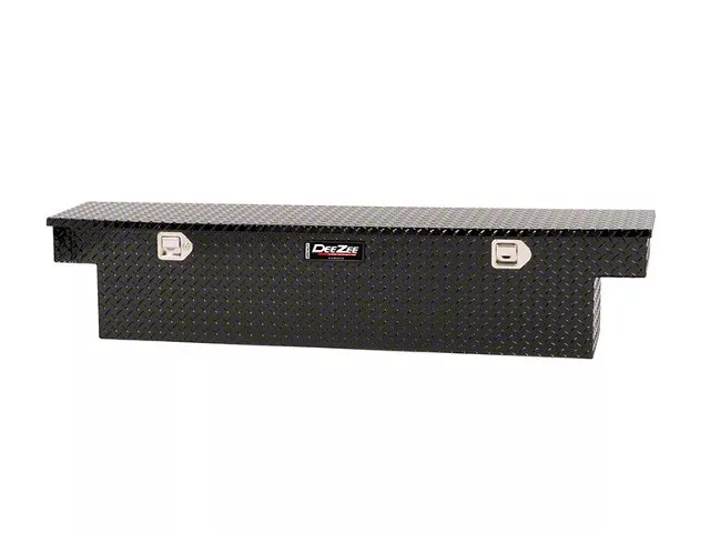 Storage Solution. This 63-inch Specialty Series Narrow Crossover Tool Box, with a volume of 5 cubic feet, is an ideal storage solution that can be transported securely in the bed of your truck. Dampened gas shocks ensure the reinforced crowned lid opens smoothly at a controlled rate, while the automotive-grade rubber bulb seal prevents moisture from penetrating the box and compromising the condition of your tools. The locking stainless steel paddle handles will keep your items safe and secure.