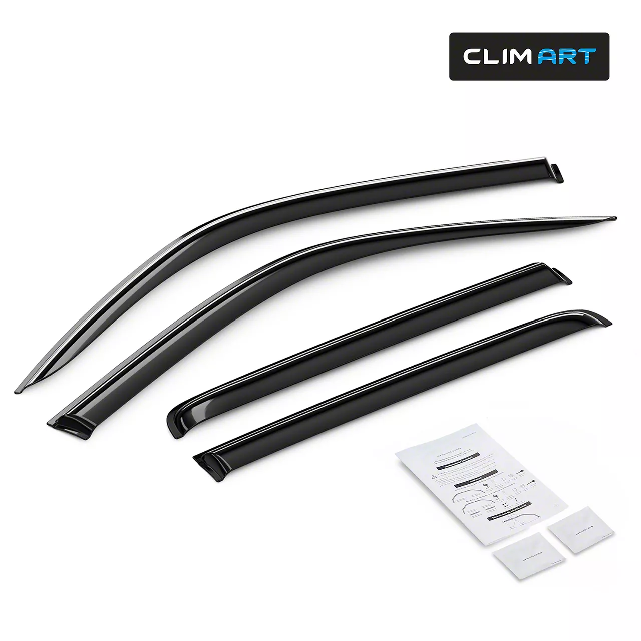 A Boost in Comfort and Style. In the quest for both utility and aesthetics for your vehicle, our Tape-On Window Deflectors stand out as a prime choice. Sold as a comprehensive set of 4 for both front and rear placements, they envelop your car in an unmatched protective embrace. They are designed meticulously to serve a dual purpose, not only enhancing your car's exterior charm with their luxurious chrome trim but also uplift your driving experience. These deflectors allow the circulation of fresh air even during mild rain showers, ensuring your comfort isn't compromised. Furthermore, they play a pivotal role in reducing wind and noise, making your journeys serene and enjoyable.