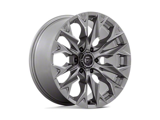 Fuel Wheels Flame Platinum 6-Lug Wheel; 20x9; 20mm Offset is a perfect blend of style and rugged design, making it a standout choice for those looking to enhance their vehicle's aesthetic appeal. Its bold, dark metallic finish pairs seamlessly with a wide variety of vehicle styles, offering both modernity and durability. Built by Fuel Wheels, this wheel is designed to elevate your vehicle's appearance with its robust presence.