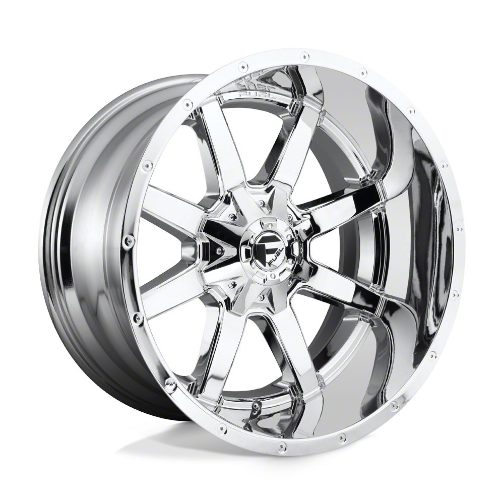 Fuel Wheels Maverick Chrome 6-Lug Wheel; 18x9; -13mm Offset is a perfect blend of style and rugged design, making it a standout choice for those looking to enhance their vehicle's aesthetic appeal. Its bold, dark metallic finish pairs seamlessly with a wide variety of vehicle styles, offering both modernity and durability. Built by Fuel Wheels, this wheel is designed to elevate your vehicle's appearance with its robust presence.
