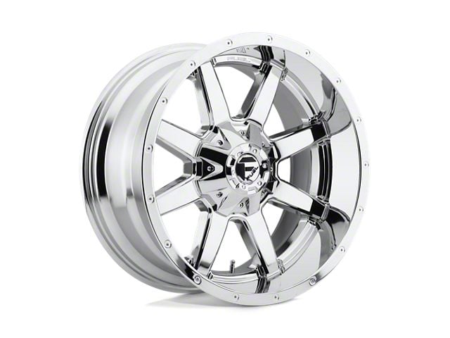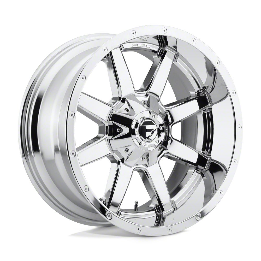 Fuel Wheels Maverick Chrome 6-Lug Wheel; 20x10; -18mm Offset is a perfect blend of style and rugged design, making it a standout choice for those looking to enhance their vehicle's aesthetic appeal. Its bold, dark metallic finish pairs seamlessly with a wide variety of vehicle styles, offering both modernity and durability. Built by Fuel Wheels, this wheel is designed to elevate your vehicle's appearance with its robust presence.