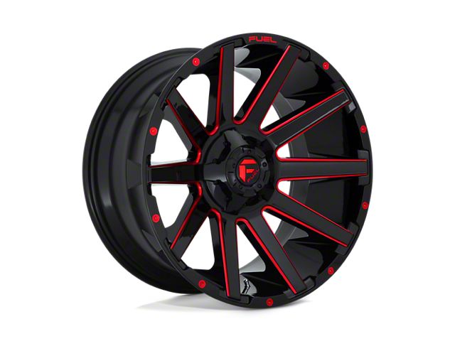 The 20x9 Fuel Wheels Contra Gloss Black with Red Tinted Clear Wheel is completed in a gloss black finish with accents that will be the envy of everyone. For added protection and good looks, there is a durable clear coat that handles the rigors of daily driving.