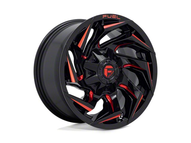 Fuel Wheels Reaction Gloss Black Milled with Red Tint 5-Lug Wheel; 20x9; 1mm Offset is a perfect blend of style and rugged design, making it a standout choice for those looking to enhance their vehicle's aesthetic appeal. Its bold, dark metallic finish pairs seamlessly with a wide variety of vehicle styles, offering both modernity and durability. Built by Fuel Wheels, this wheel is designed to elevate your vehicle's appearance with its robust presence.