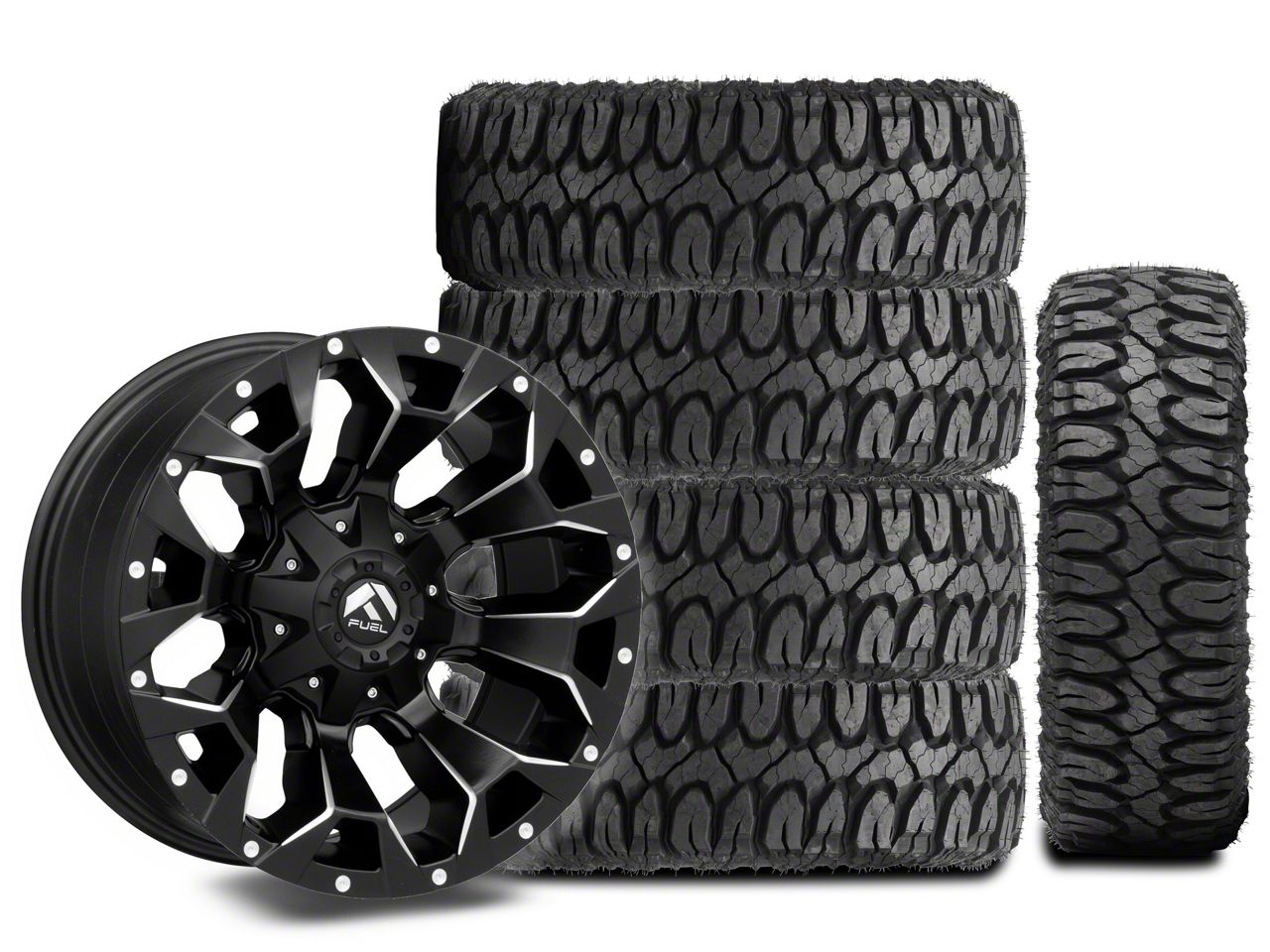 Application. This Fuel Assault Satin Black Machined; 18x9 and Milestar Patagonia M/T Mud-Terrain; Set of 5 is designed to fit 2018-2026 Jeep Wrangler JL models.