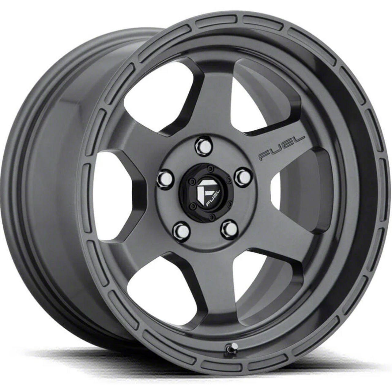 Fuel Wheels Shok Textured Anthracite 6-Lug Wheel; 18x9; 1mm Offset offers a sleek and modern design that enhances the visual appeal of any vehicle. Crafted with attention to detail, this wheel merges aesthetic elegance with a robust build, making it a fitting choice for those seeking a blend of style and durability.
