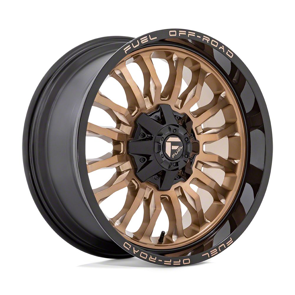 Fuel Wheels Arc Platinum Bronze with Black Lip 6-Lug Wheel; 20x9; 1mm Offset exudes a sleek aesthetic appeal, complementing a range of vehicle styles. Its dark stainless finish emanates sophistication, while the brand reputation of Fuel Wheels ensures robustness. This wheel seamlessly merges elegance with durability.