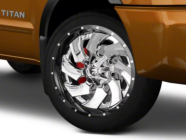 Application. This Fuel Wheels Cleaver Chrome with Gloss Black 6-Lug Wheel; 22x10; -13mm Offset with a backspace of 4.989 Inch, 126.8mm and bolt pattern of 6 x 139.7mm (6 x 5.5-Inch) is meticulously engineered to enhance alignment and driving stability. It is designed to fit 2004-2015 Titan models. Sold individually.