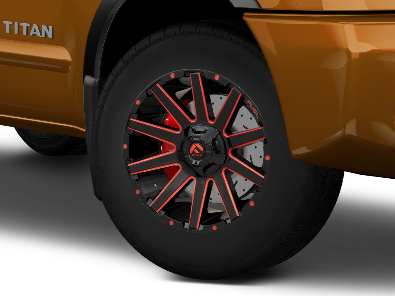 Application. This Fuel Wheels Contra Gloss Black with Red Tinted Clear 6-Lug Wheel; 18x9; 1mm Offset with a backspace of 5.2004 Inch, 128.1mm and bolt pattern of 6 x 139.7mm (6 x 5.5-Inch) ensures impeccable alignment and driving stability. It's designed to fit the 2004-2015 Titan models, sold individually.Fuel Wheels D64318909850
