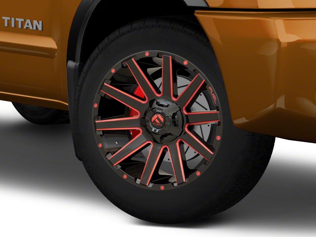 Application. This Fuel Wheels Contra Gloss Black with Red Tinted Clear 6-Lug Wheel; 20x9; 20mm Offset with a backspace of 5.788 Inch, 147.1mm; and bolt pattern of 6 x 139.7mm (6 x 5.5-Inch), contributes to alignment, driving stability, and ensures a perfect fit with the vehicle model. Designed to fit the 2004-2015 Titan. Sold individually.