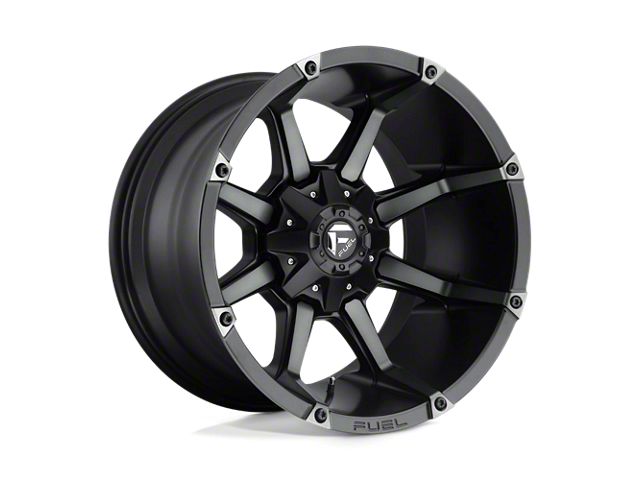 Fuel Wheels Coupler Matte Black Double Dark Tint 6-Lug Wheel; 20x10; -18mm Offset The Fuel Wheels Coupler Matte Black Double Dark Tint 6-Lug Wheel combines a sleek, sophisticated design with premium construction that enhances the visual appeal and complements a wide range of vehicle styles. This wheel is perfect for those seeking to make a bold statement while maintaining elegance and robustness.