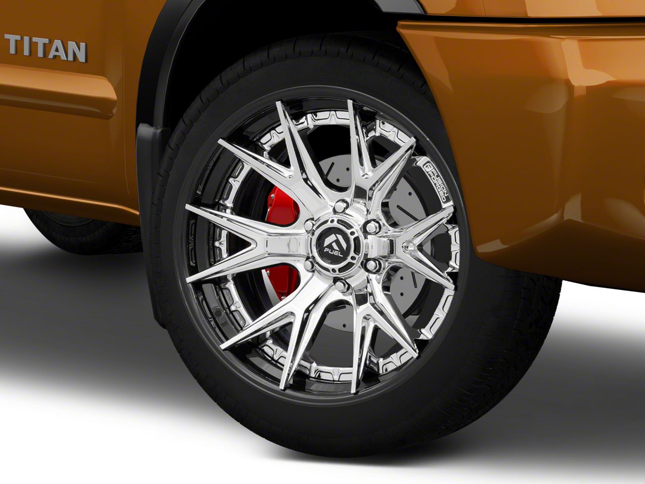 Application. The Fuel Wheels Fusion Forged Catalyst Chrome with Gloss Black Lip 6-Lug Wheel; 22x10; -18mm Offset, with a backspace of 4.791 Inch, 121.7mm and a bolt pattern of 6 x 139.7mm (6 x 5.5-Inch), is designed to enhance alignment and stability for a smooth driving experience. Specifically tailored to fit 2004-2015 Titan models, it ensures a perfect blend of style and functionality. Sold individually, this wheel is an ideal upgrade for your vehicle.
