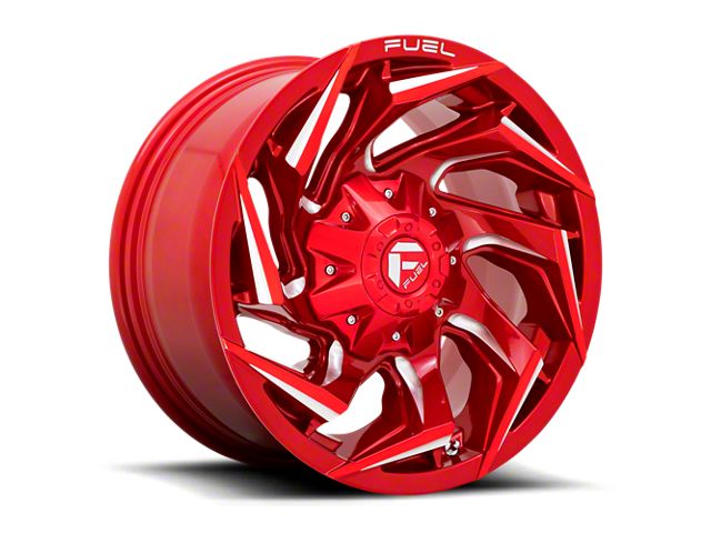 The 24x12 Fuel Wheels Reaction Candy Red Milled 6-Lug Wheel; ; -44mm Offset is completed in a stunning candy red hue, that features milled accents for an impressive head-turning presentation.