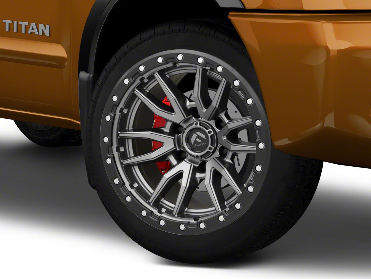 Application. This Fuel Wheels Rebel Matte Gunmetal with Black Bead Ring 6-Lug Wheel; 22x10; -13mm Offset, with a backspacing of 4.988 Inch, 126.7mm and bolt pattern of 6 x 139.7mm (6 x 5.5-Inch), ensures precise alignment and stable driving. Designed to fit 2004-2015 Titan models, this wheel is sold individually.