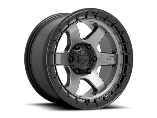 Fuel Wheels Block Matte Gunmetal with Black Ring 6-Lug Wheel; 17x9; 1mm Offset The Fuel Wheels Block Matte Gunmetal with Black Ring 6-Lug Wheel showcases a blend of race-inspired aesthetics, ideal for those seeking a premium and robust appearance. Its design complements various vehicle styles, adding sophistication.