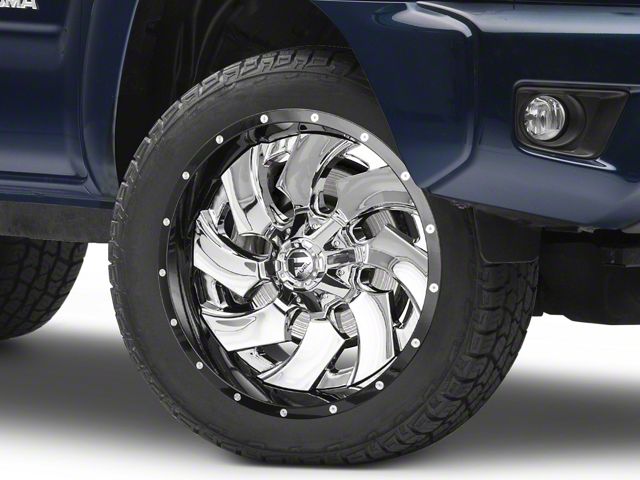 Application. This Fuel Wheels Cleaver Chrome with Gloss Black 6-Lug Wheel; 22x10; -13mm Offset with a backspace of 4.989 Inch, 126.8mm and bolt pattern of 6 x 139.7mm (6 x 5.5-Inch) is meticulously engineered to enhance alignment and driving stability. It is designed to fit 2005-2015 Tacoma models. Sold individually.