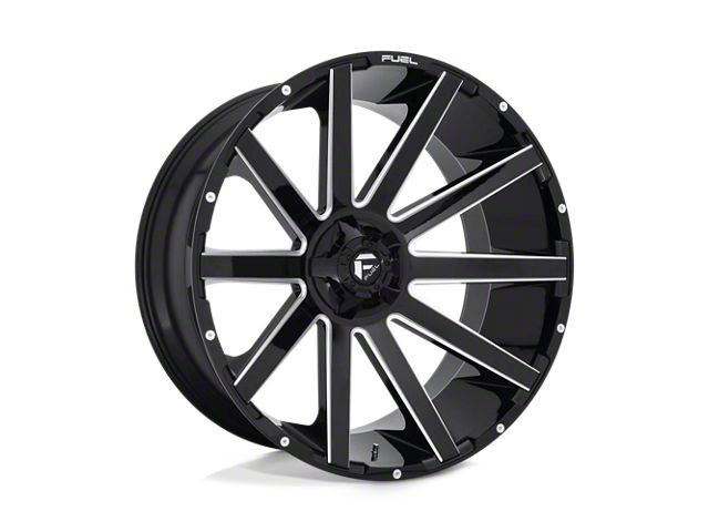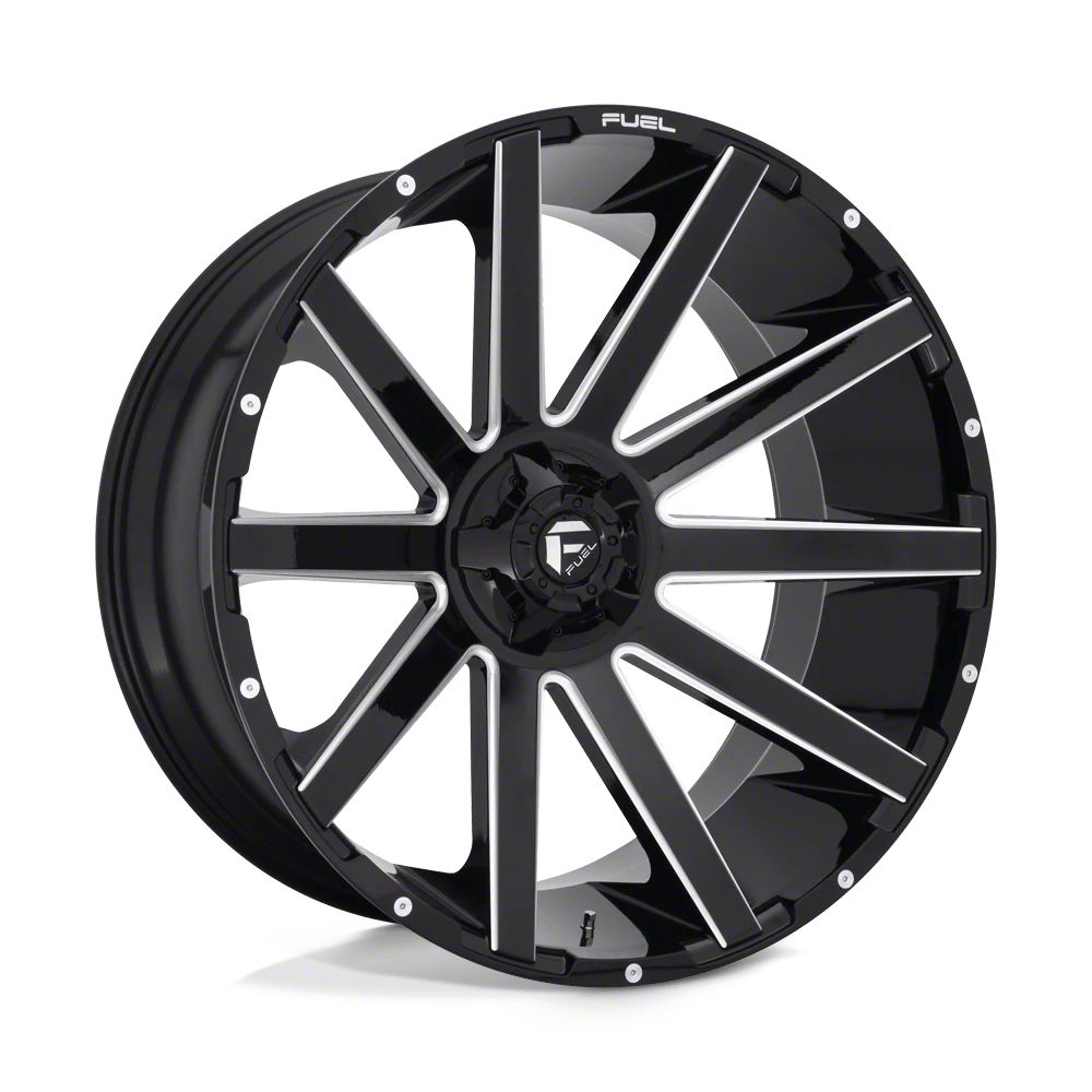 Fuel Wheels Contra Gloss Black Milled 6-Lug Wheel; 26x12; -44mm Offset The Fuel Wheels Contra Gloss Black Milled 6-Lug Wheel combines a sleek, sophisticated design with premium construction that enhances the visual appeal and complements a wide range of vehicle styles. This wheel is perfect for those seeking to make a bold statement while maintaining elegance and robustness.