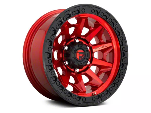 Fuel Wheels Covert Candy Red with Black Bead Ring 6-Lug Wheel; 17x9; 1mm Offset: Redefine your vehicle's style with the Fuel Wheels Covert Candy Red with Black Bead Ring 6-Lug Wheel. This wheel's elegant design and striking finish embody a blend of sophistication and boldness, perfectly complementing a wide array of vehicle aesthetics. Crafted from high-quality materials, it's a testament to durability and style.