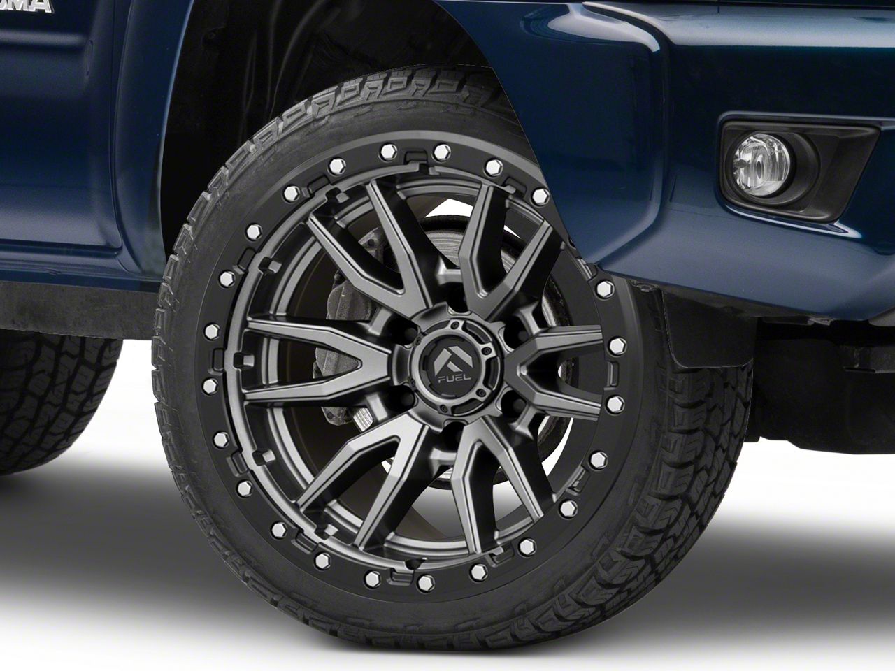 Application. This Fuel Wheels Rebel Matte Gunmetal with Black Bead Ring 6-Lug Wheel; 22x10; -13mm Offset, with a backspacing of 4.988 Inch, 126.7mm and bolt pattern of 6 x 139.7mm (6 x 5.5-Inch), ensures precise alignment and stable driving. Designed to fit 2005-2015 Tacoma models, this wheel is sold individually.