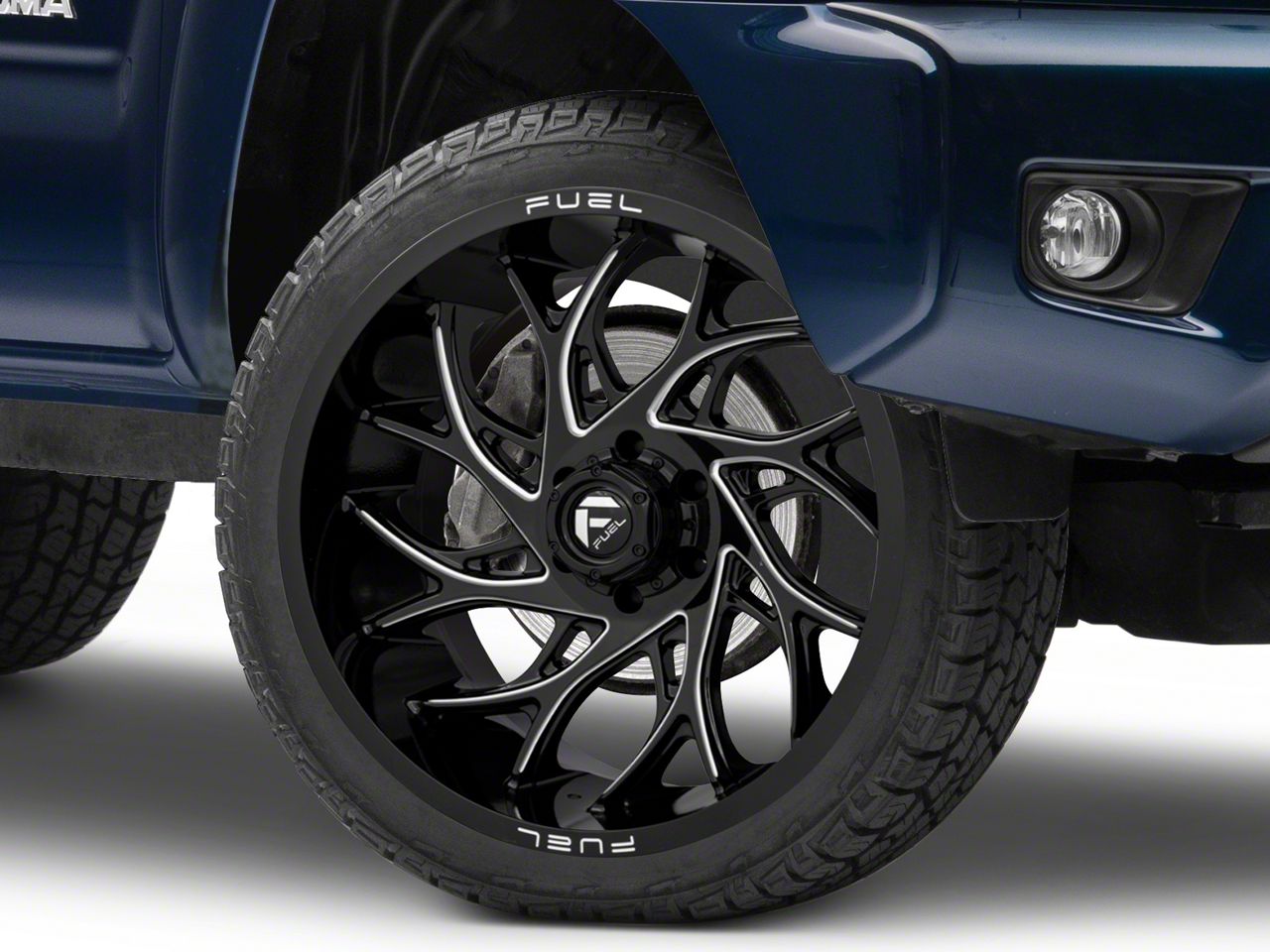Application. This Fuel Wheels Runner Gloss Black Milled 6-Lug Wheel; 24x12; -44mm Offset with a backspace of 4.768 Inch, 121.2mm and bolt pattern of 6 x 139.7mm (6 x 5.5-Inch) ensures optimal alignment, unparalleled driving stability, and an impeccable fit with your vehicle. It is designed to fit the 2005-2015 Tacoma models. Sold individually.