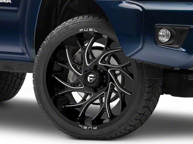 Application. This Fuel Wheels Runner Gloss Black Milled 6-Lug Wheel; 26x14; -75mm Offset, with a backspace of 4.547 Inch, 115.5mm and bolt pattern of 6 x 139.7mm (6 x 5.5-Inch), is designed to provide not only a striking visual appeal but also to contribute significantly to the alignment and driving stability of the vehicle. Its specifications ensure a precise fit with the vehicle model, enhancing the overall driving experience. Built to fit the 2005-2015 Tacoma, this wheel is sold individually.