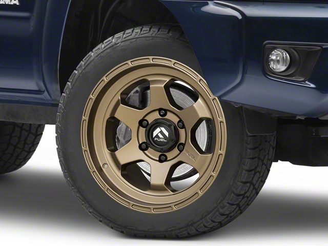 Application. This Fuel Wheels Shok Matte Bronze 6-Lug Wheel; 20x9; 19mm Offset with a backspace of 5.749 Inch, 146.1mm; and bolt pattern of 6 x 139.7mm (6 x 5.5-Inch) contributes to impeccable alignment and driving stability. Designed to fit 2005-2015 Tacoma models, sold individually.