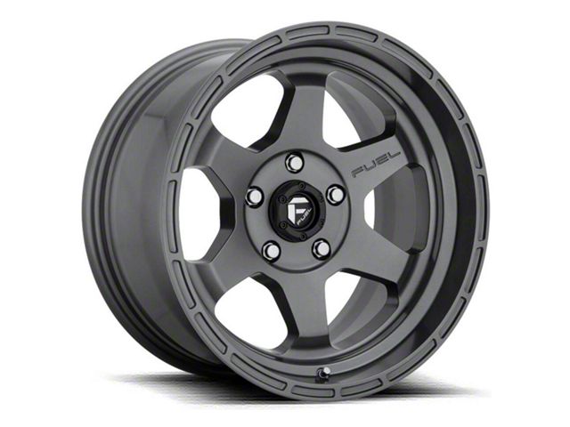 Fuel Wheels Shok Textured Anthracite 6-Lug Wheel; 17x9; -12mm Offset exudes sophistication with its finish, offering a sleek and modern appeal to any vehicle it adorns. The design is meticulously crafted to enhance the aesthetic of your vehicle, giving it a distinctive and upscale look. Perfect for those seeking to elevate their vehicle's style, this wheel blends seamlessly with both contemporary and classic vehicle designs, making it a versatile choice for a wide range of vehicles. Its robust construction ensures durability, making it a reliable choice for drivers who value both style and quality.