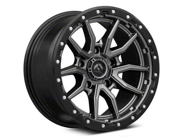 Matte Gunmetal Finish with Black Bead Ring. This 18x9 Fuel Wheels Rebel Series Wheel is completed in a high quality matte gunmetal gray finish with a black bead lock ring for striking contrast in appearance that everyone will envy. For added protection and good looks, this Wheel features a durable clear coat that is tough enough to stand up against the hazards of everyday driving - including road chips and pitting.