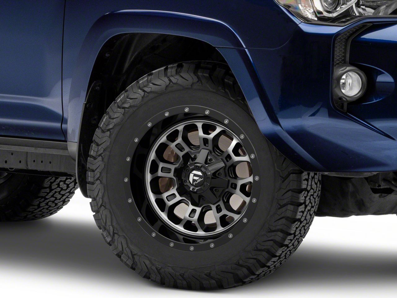 Application. This Fuel Wheels Crush Gloss Machined Double Dark Tint 6-Lug Wheel; 18x9; 19mm Offset, with a backspace of 5.749 Inch, 146.1mm; and bolt pattern of 6 x 139.7mm (6 x 5.5-Inch), ensures precise alignment and unwavering stability. Designed to fit the 2010-2024 4Runner models, it stands out as a tailored enhancement. Sold individually.
