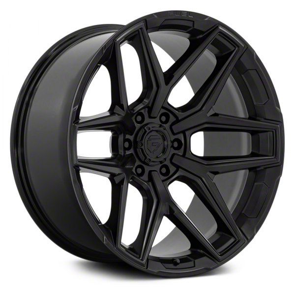 Fuel Wheels Fusion Forged Flux Blackout 6-Lug Wheel; 17x9; 1mm Offset: This wheel combines a striking aesthetic with a robust design, making it a premium choice for enhancing the look of your vehicle. Its unique finish and design add a sleek, modern touch to any vehicle style, emphasizing the wheel's quality and craftsmanship.