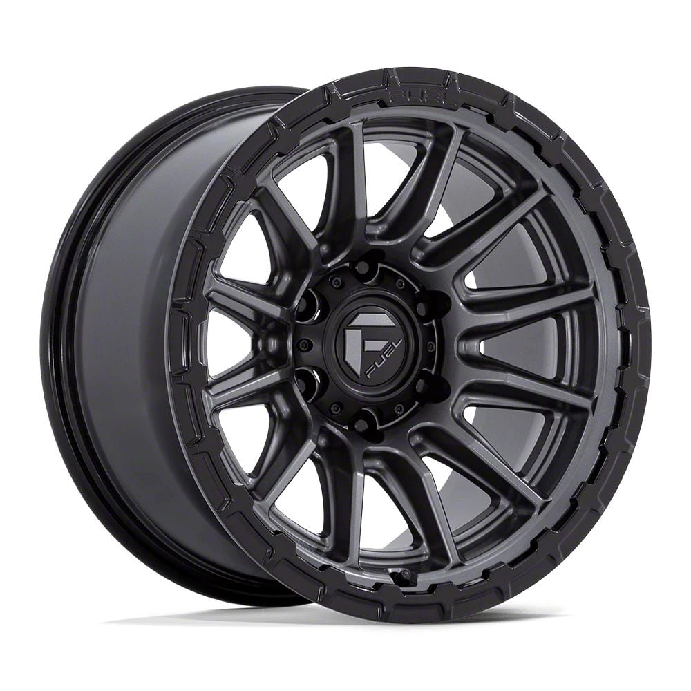 Fuel Wheels Piston Matte Gunmetal with Gloss Black Lip 6-Lug Wheel; 22x10; -18mm Offset The Fuel Wheels Piston Matte Gunmetal with Gloss Black Lip 6-Lug Wheel combines a sleek, sophisticated design with premium construction that enhances the visual appeal and complements a wide range of vehicle styles. This wheel is perfect for those seeking to make a bold statement while maintaining elegance and robustness.