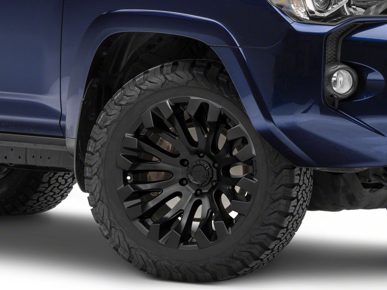 Application. This Fuel Wheels Quake Blackout 6-Lug Wheel; 20x9; 1mm Offset, with a backspacing of 5.039 Inch, 128mm and a bolt pattern of 6 x 139.7mm (6 x 5.5-Inch), offers superior alignment and stability. It's precisely engineered to enhance your vehicle's performance. Designed to fit 10-24 4Runner models, it ensures a perfect fit and impeccable style. Sold individually.