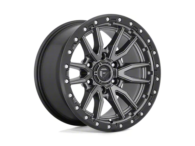 Fuel Wheels Rebel Matte Gunmetal with Black Bead Ring 6-Lug Wheel; 16x8; 1mm Offset has a unique aesthetic appeal, combining a rugged finish with a sleek design. This striking design enhances the visual impact of any vehicle, making it a standout on the road. Perfect for those seeking a balance of toughness and style.