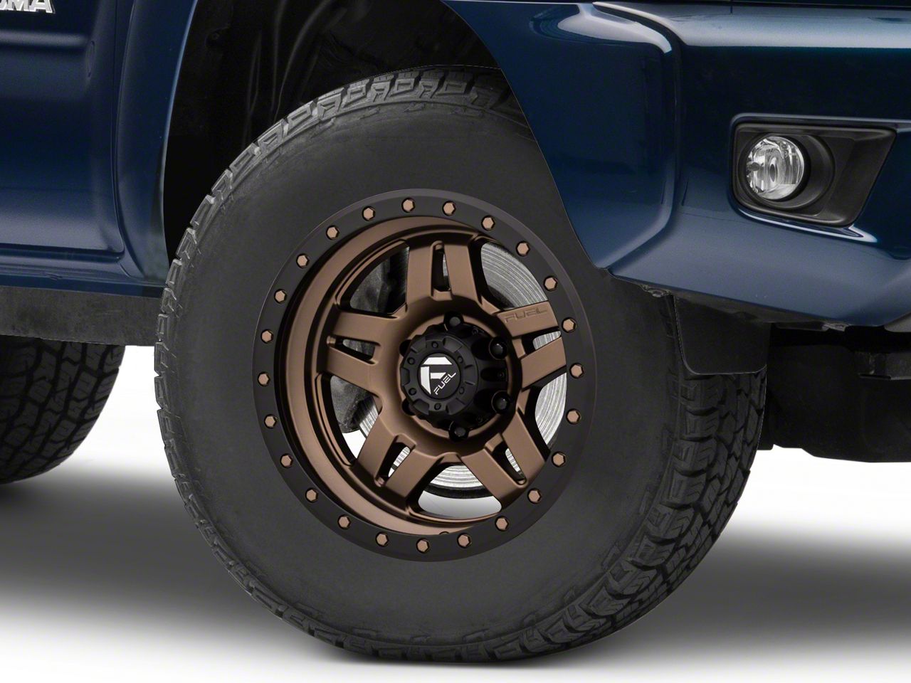 Application. This Fuel Wheels Anza Matte Bronze with Black Ring 6-Lug Wheel; 17x8.5; -6mm Offset, with a backspace of 4.514 Inch, 114.7mm; and bolt pattern of 6 x 139.7mm (6 x 5.5-Inch), ensures precise alignment and unwavering stability. Designed to fit the 2005-2015 Tacoma models, it stands out as a tailored enhancement. Sold individually.