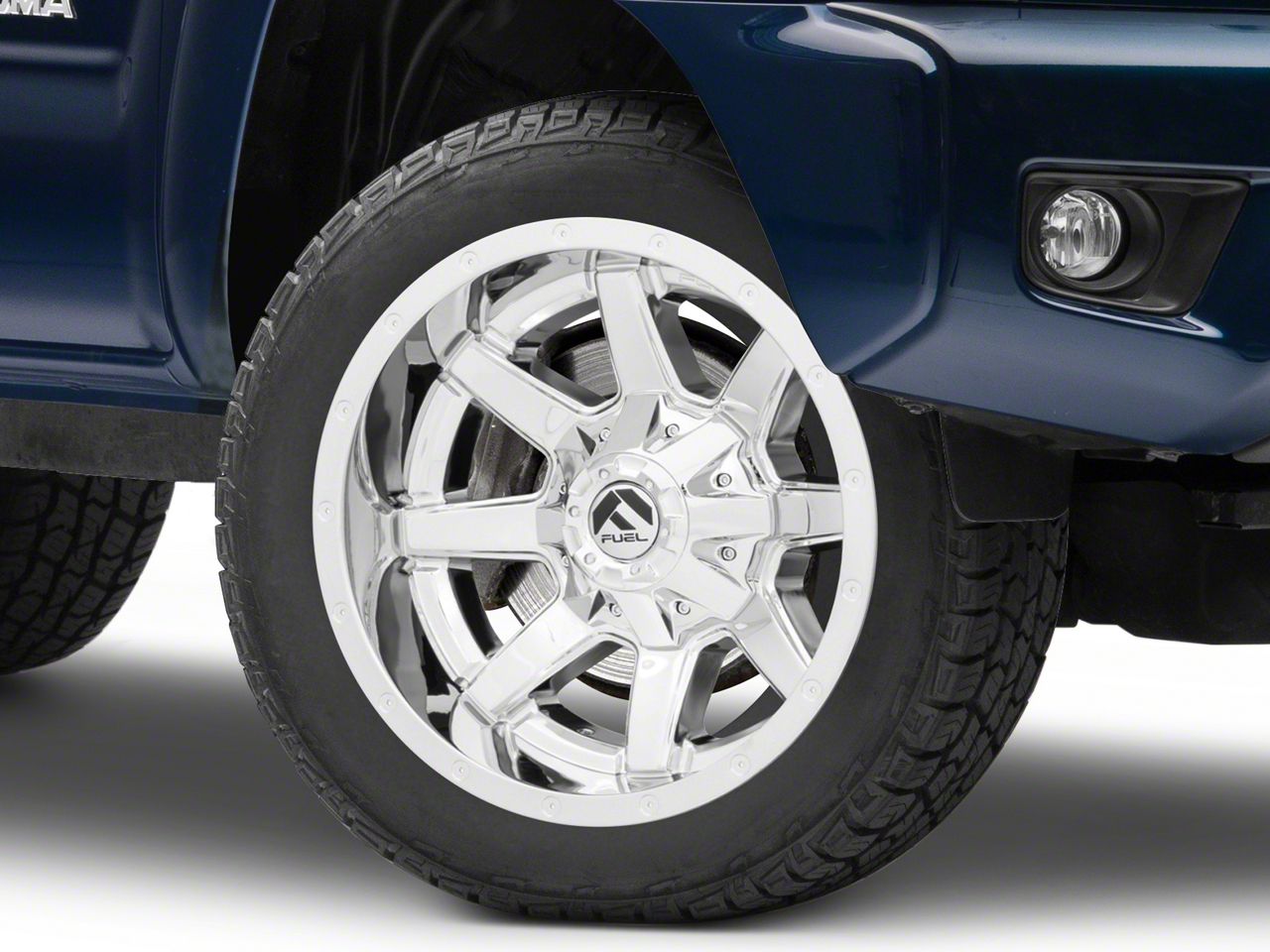 Application. This Fuel Wheels Maverick Chrome 6-Lug Wheel; 20x10; -24mm Offset with a backspace of 4.556 Inch, 115.8mm and bolt pattern of 6 x 139.7mm (6 x 5.5-Inch) ensures optimal alignment, unparalleled driving stability, and an impeccable fit with your vehicle. It is designed to fit the 2005-2015 Tacoma models. Sold individually.