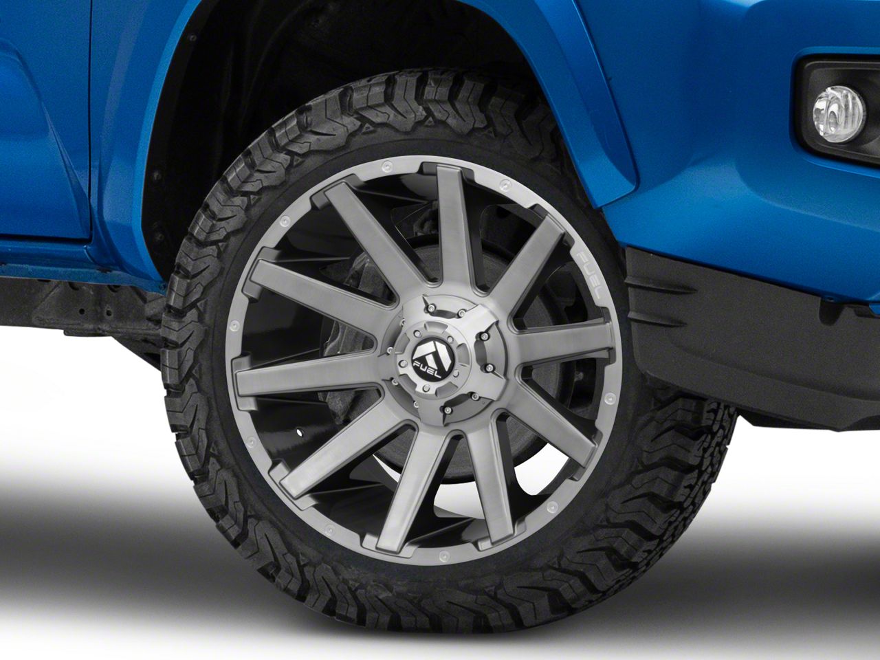 Application. This Fuel Wheels Contra Platinum Brushed Gunmetal 6-Lug Wheel; 20x9; 19mm Offset, with a backspace of 5.749 Inch, 146.1mm; and bolt pattern of 6 x 139.7mm (6 x 5.5-Inch), ensures precise alignment and unwavering stability. Designed to fit the 2016-2023 Tacoma models, it stands out as a tailored enhancement. Sold individually.