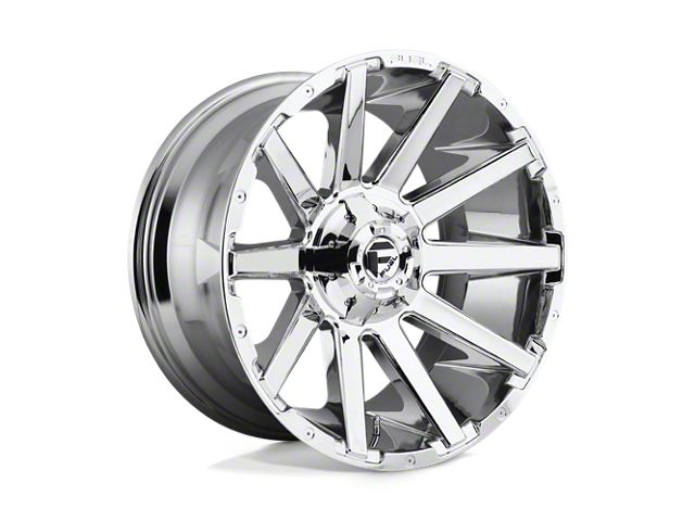 Fuel Wheels Contra Chrome 6-Lug Wheel; 20x9; 20mm Offset delivers a bold and modern aesthetic, ideal for enthusiasts seeking a refined yet assertive look for their vehicle. With its standout design and distinct finish, this wheel enhances the vehicle's visual stance and street presence. The precise craftsmanship and premium aluminum build reflect Fuel Wheels' dedication to quality and distinctive design. Whether parked or in motion, this wheel draws attention with its clean, aggressive styling.