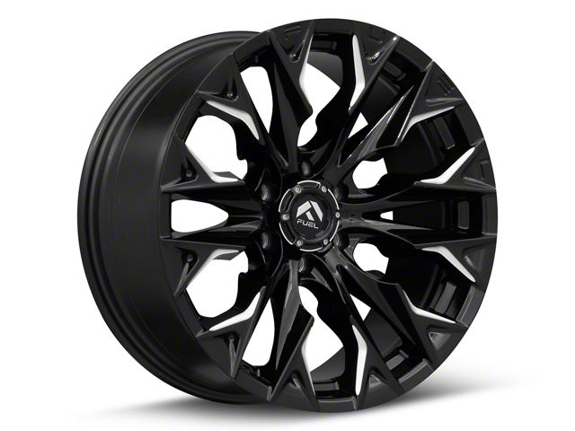 Fuel Wheels Flame Gloss Black Milled 6-Lug Wheel; 22x12; -44mm Offset delivers a bold and modern aesthetic, ideal for enthusiasts seeking a refined yet assertive look for their vehicle. With its standout design and distinct finish, this wheel enhances the vehicle's visual stance and street presence. The precise craftsmanship and premium aluminum build reflect Fuel Wheels' dedication to quality and distinctive design. Whether parked or in motion, this wheel draws attention with its clean, aggressive styling.