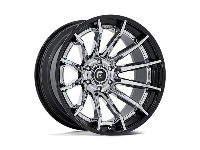 Fuel Wheels Fusion Forged Burn Chrome with Gloss Black Lip 6-Lug Wheel; 22x10; -18mm Offset delivers a bold and modern aesthetic, ideal for enthusiasts seeking a refined yet assertive look for their vehicle. With its standout design and distinct finish, this wheel enhances the vehicle's visual stance and street presence. The precise craftsmanship and premium aluminum build reflect Fuel Wheels' dedication to quality and distinctive design. Whether parked or in motion, this wheel draws attention with its clean, aggressive styling.